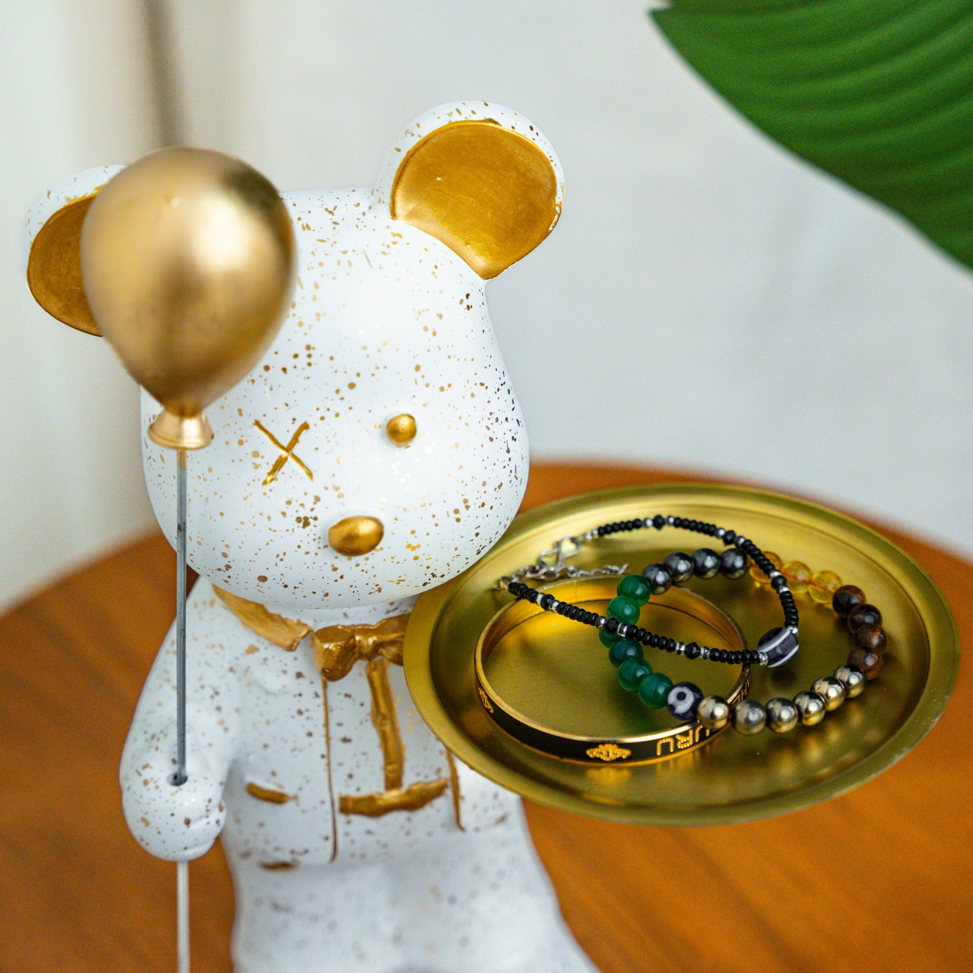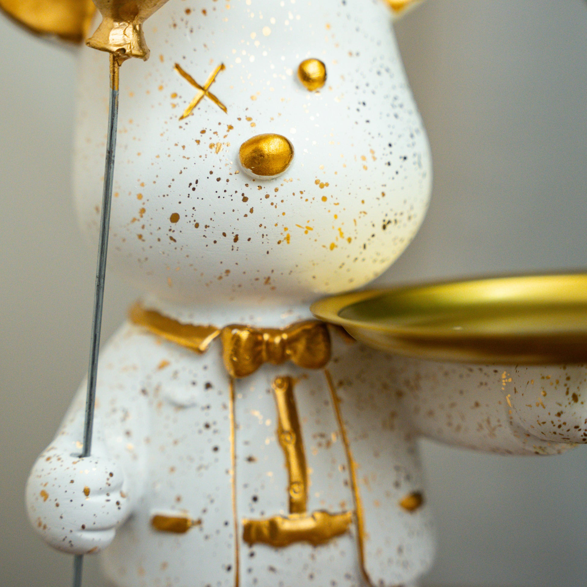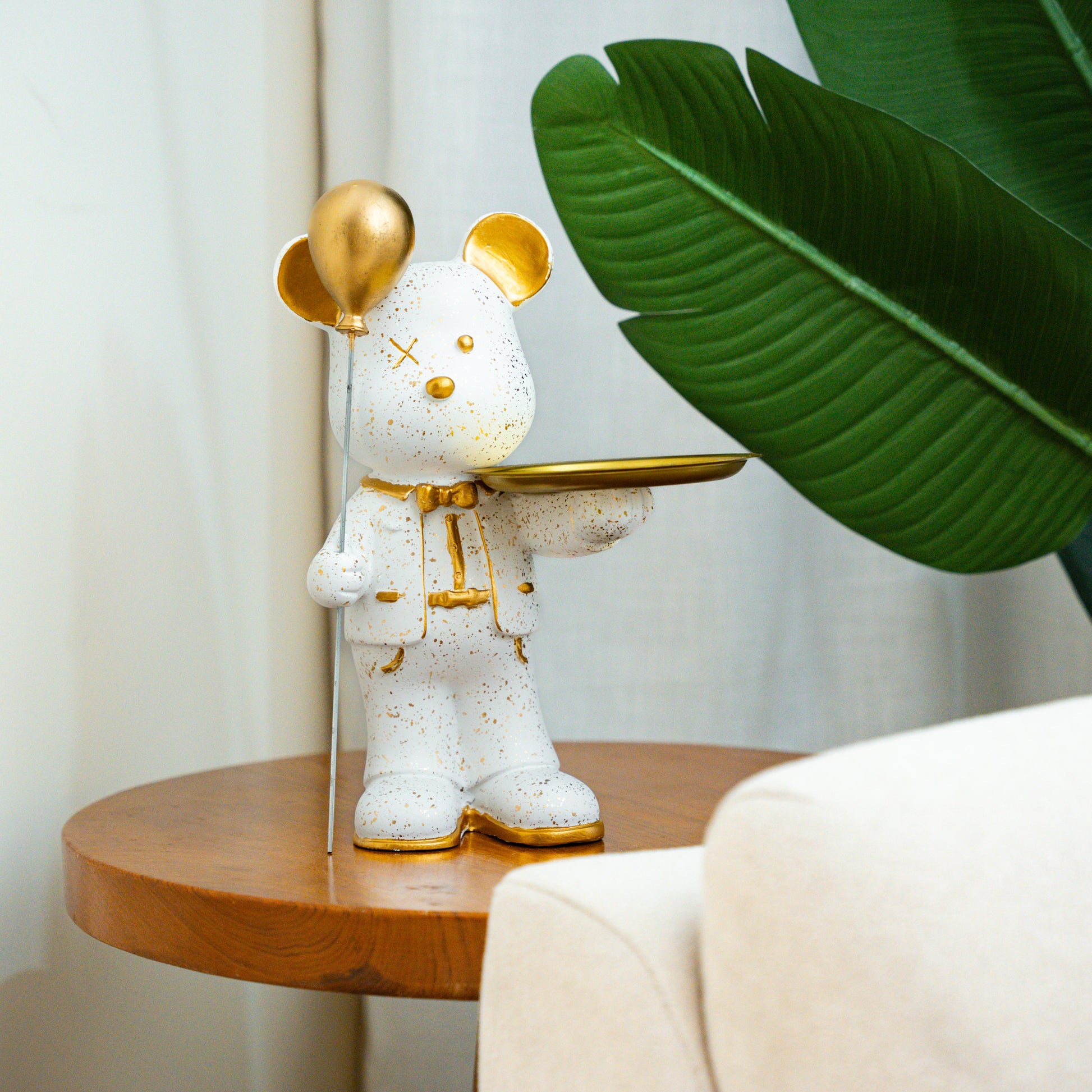 - Crafted with high-quality resin, the bear features elegant gold accents and a sturdy tray that can hold small essentials