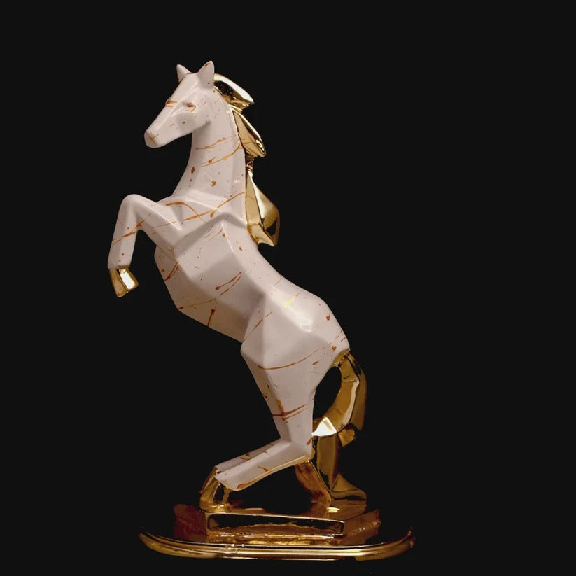 Bring home the Jumping White Abstract Horse with 24K Gold Finish and invite strength, prosperity, and positive energy into your life. Order now and elevate your home with this timeless and elegant piece!