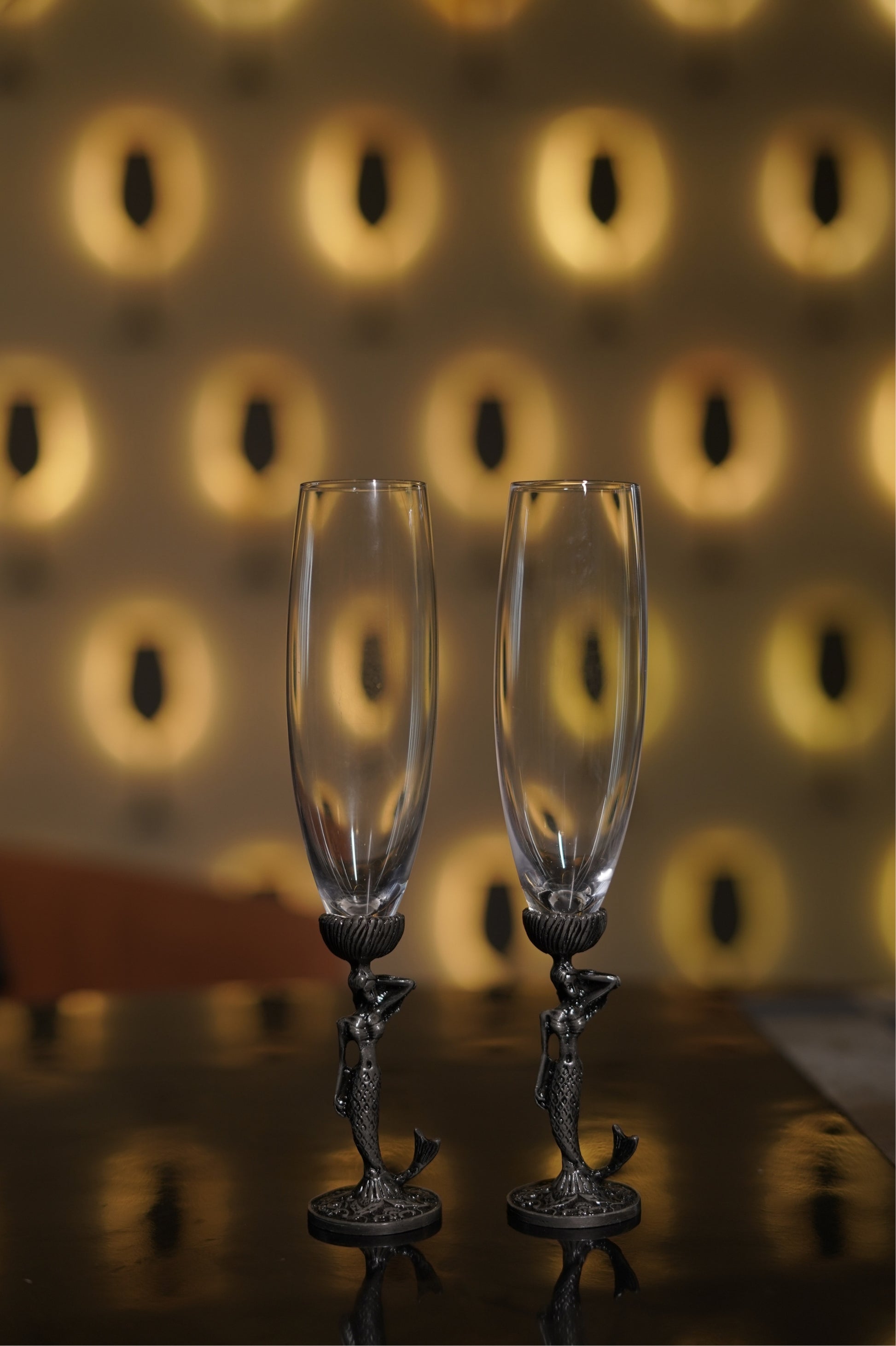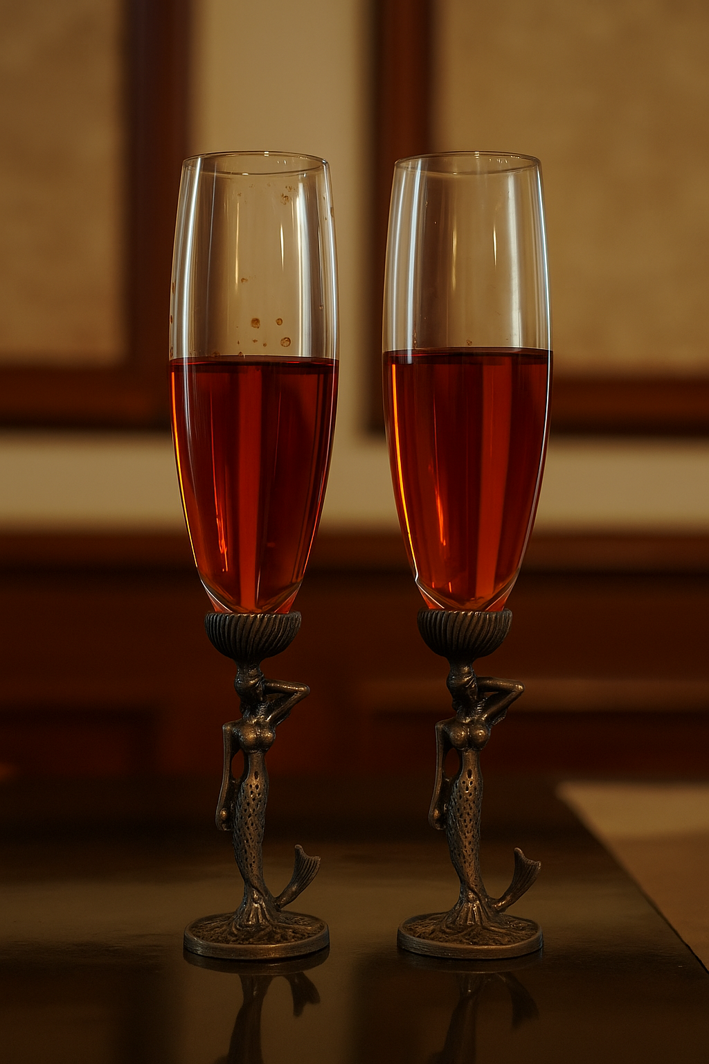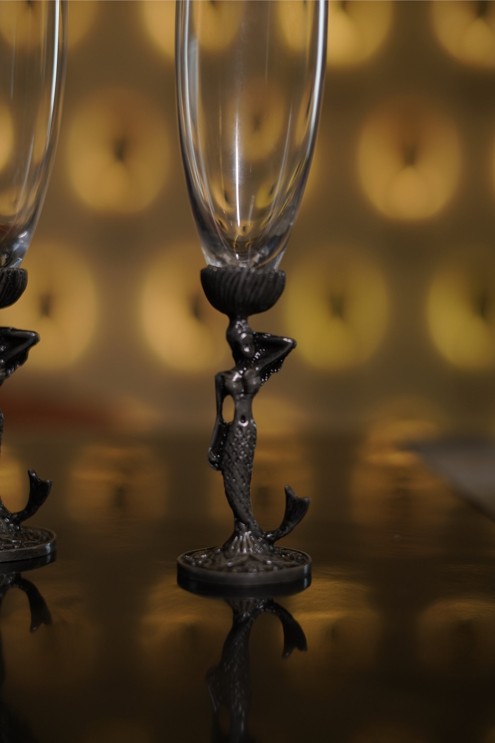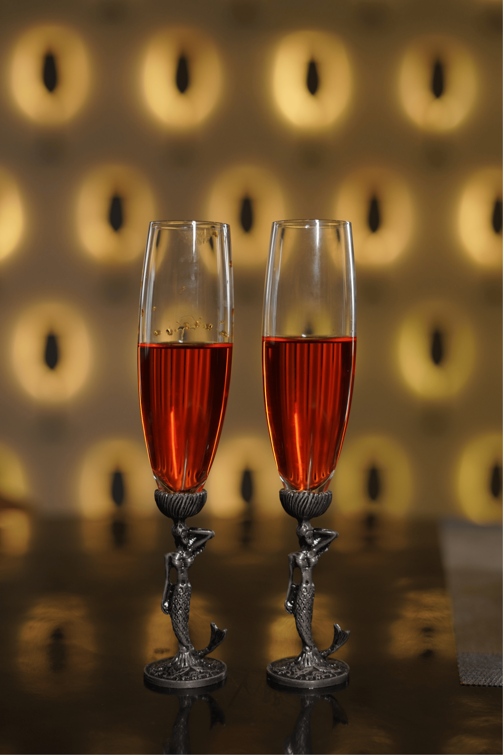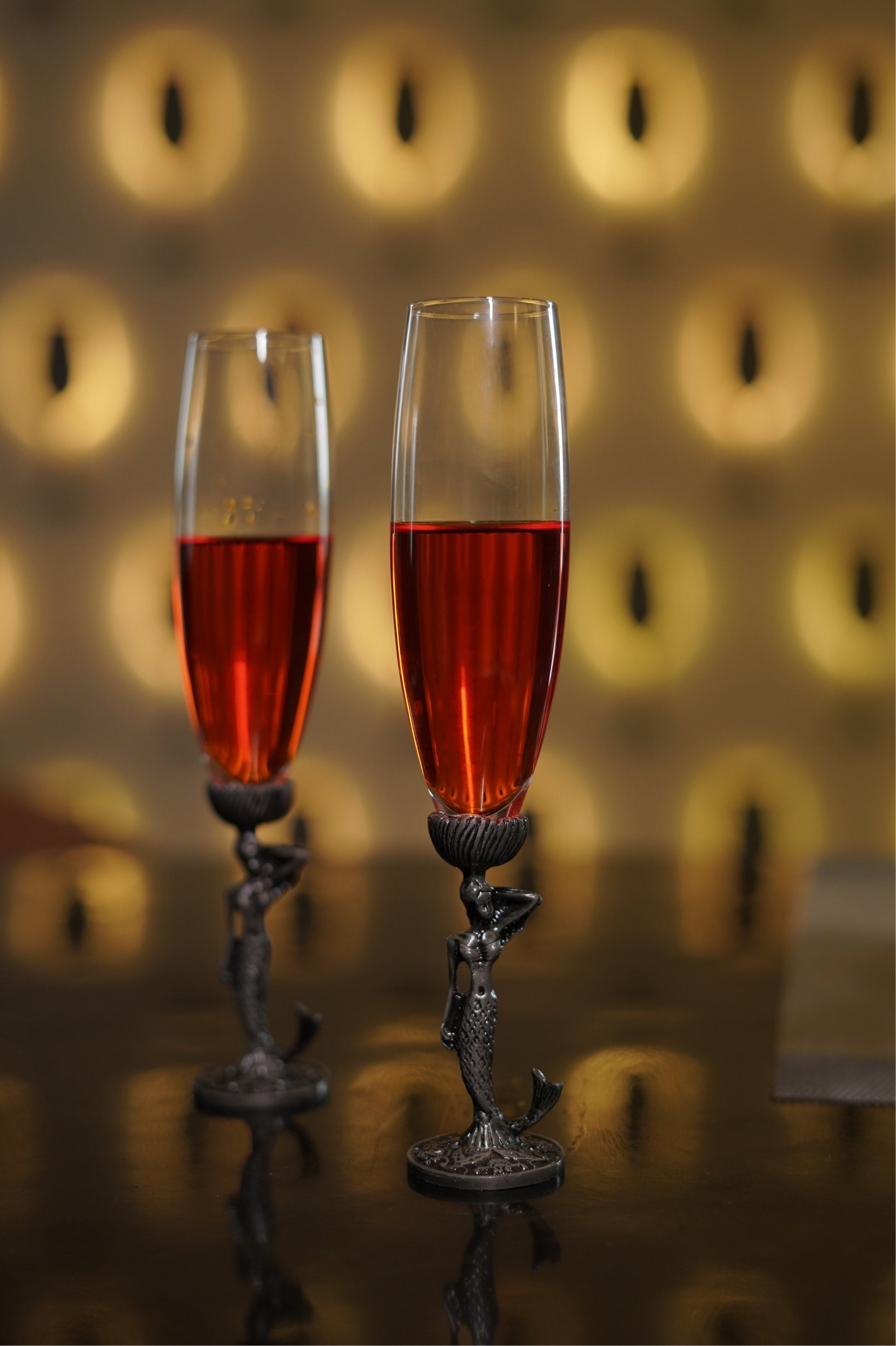 Raise a toast in style with these exquisite mermaid stem wine glasses, crafted to add a touch of sophistication to your celebrations. The intricate detailing of the mermaid base beautifully complements the sparkling red drink, making each moment feel magical and unforgettable.